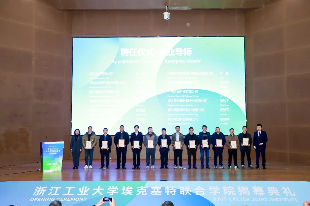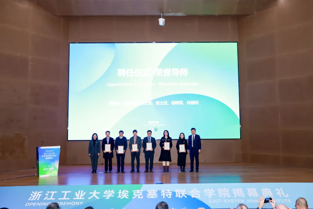 典禮現(xiàn)場(chǎng)還舉行了浙江工業(yè)大學(xué)??巳芈?lián)合學(xué)院揭牌、國(guó)際聯(lián)合實(shí)驗(yàn)室揭牌、學(xué)院宣傳片首發(fā)、未來(lái)規(guī)劃建筑片首發(fā)、榮譽(yù)導(dǎo)師聘任、獎(jiǎng)學(xué)金捐贈(zèng)等活動(dòng)。典禮結(jié)束后,英國(guó)埃克塞特大學(xué)一行參觀(guān)聯(lián)合學(xué)院辦公室和二期場(chǎng)地。